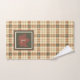 Welcome fall with this custom plaid pattern bathroom bath towel set. Bath towel set features beautiful autumn colors -- tan, brown, green, burnt orange, and yellow. A traditional maple leaf and your family monogram initial completes the look.
