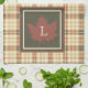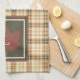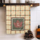 Brown Plaid Pattern Fall Maple Leaf Monogram Kitchen Towel