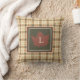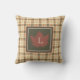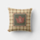 Brown Plaid Pattern Fall Maple Leaf Monogram Throw Pillow