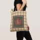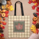 Brown Plaid Pattern Fall Maple Leaf Monogram Tote Bag
