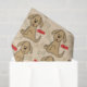 A cute brown puppy dog pattern. One with his little tongue sticking out. A red dog food bowl with a dog bone in it and paw prints shaped like hearts in the background in a light beige. Great for Dog Groomers, Veterinarian, Dog Walkers, Dog Lovers and Dog Owners.