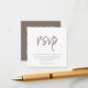 Looking for the perfect wedding RSVP card? Look no further! Our compact customizable modern wedding RSVP card features stylish script typography that is sure to impress your guests. With a brown and white background, you can easily include your own custom text to make it truly unique. On the reverse, create a brand new QR code that links directly to your wedding website for easy access and convenience. Go the the "personalize" option, add your wedding website URL to the area provided, and a QR code will generate on the design just for you. Order now and let the RSVPs start rolling in!