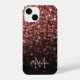 Brown Red faux Glitter sparkles bling Monogram iPhone Case