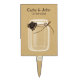 brown rose on a Rustic, shabby chic country mason jar on FAUX white lace and burlap back personalized cake picks card. Elegant an stylish for a country wedding or a farm wedding great for any outdoor wedding too. Matching products also available.
