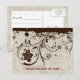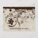Fun design featuring image of old parchment and shabby brown lace. Rsvp postcards.