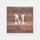 Brown Script Monogram Name Rustic Wood Pattern established date Napkins