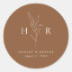 Brown Simple Minimal Monogram Botanical Wedding Classic Round Sticker