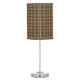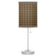 Custom brown check print lamp. Coordinates with our other décor and accessories. Style: Table Lamp Brighten up any room with this custom table lamp from Lamp-In-A-Box. Personalize the lamp shade with original artwork, photography, or bold graphics to create a statement piece that will add instant style to your home decor. Choose your trim and base for a special, one-of-a kind home or office accent. • Choose from film polyester, rice paper, or linen lamp shades • Printed in vibrant color with fade resistant ink. •Dimensions: 20"h x 7"w (with shade); 2 lbs •120 Volt; Up to 60-watt incandescent light bulb (light bulb not included) • Includes a 6’ Power Cord with 2-prong USA plug and pull chain •Recommended for ages 8+.
