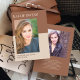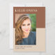 Personalized brown and tan (editable color) graduation announcement photo flat card. Personalized with 2 photos, graduate's name, school name, and graduation year. On the back is another photo along with a note to friends and family. This note can talk about your graduate's accomplishments in high school and/or their plans for the future. It can include information about the graduation ceremony or an invitation to your graduation party.