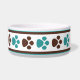 Brown & Teal Paw Prints Personalized Dog Bowl