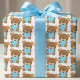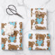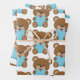 Brown Teddy Bear Blue Heart Gift Wrap