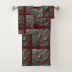 🤎 Tooled Brown Faux Leather & Teal Feathers Towel Set 🤎