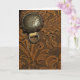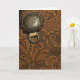 Customize the Brown Tooled Leather Horse Saddle Blank Greeting Card with your own personal message inside. This custom country and western theme note card features a close up digitally enhanced farm photograph of a brown equestrian saddle with an intricate tooled leather floral and leaf design.