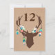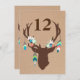 Rustic tribal themed custom wedding reception table number card done in a craft paper look. Graphics of a brown stags head silhouette, in the middle of the card, is decorated with feathers and flowers. Personalize the brown number for EACH table at your reception. Matches our Rustic Wood with Deer Head wedding set.