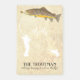 Large brown trout after a fly fishing lure, with fly fisherman and heartbeat fishing line, about to hook his fish. Sophisticated cream background. Customize with the text of your choice.