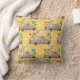 A cute autumn/fall pattern of brown trucks filled with pumpkins. Sunflowers and teal flowers are also scattered across the harvest yellow background.