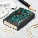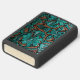 The design has a cool brown and turquoise-blue tooled leather floral pattern.