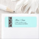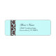 A custom return address label with script and standard letters on a teal background and a medieval element in chocolate brown. Click Customize It to change fonts or colors, even save your design for later.