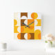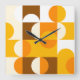 Brown White Orange Yellow Half Circles Pattern Square Wall Clock