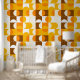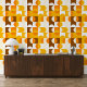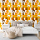 This design showcases a captivating contemporary pattern of geometric circles and squares in dark yellow, light orange, white, and brown. It conveys an ornate, elegant, and stylish vibe, making it ideal for the sophisticated artistic fashionista, trendy fashion diva, popular hip trendsetter, vintage retro art style enthusiast, and lovers of abstract digital geometric motifs. You can find this design available on a variety of attractive home decor items.
