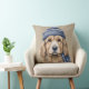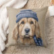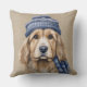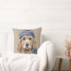 BROWN & WHITE SHAGGY DOG WITH BLUE HAT THROW PILLOW