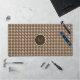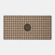A classic houndstooth design in shades of brown and tan creates a fun and updated pattern with a final accent of a metallic-like rose gold mixed in to create a design that will really pop. Customize the monogram in the circle with your initial to create a unique desk mat for your work or play space.