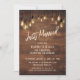 Brown Wood Wall with Edison Lights, Just Married Invitation