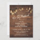 Brown Wood Wall with Edison Lights, We Got Married Invitation