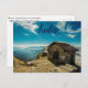 This postcard features a brown wooden house on a mountain cliff in Chandrashila, Tungnath, India. Chandrashila means "moon rock" and it is summit of the Tungnath mountains. It is 13, 500 ft above sea level and provides a view of the Himalayas. According to one legend, this is the place where Lord Rama meditated after defeating the demon-king Ravana and another legend says that moon-god Chandra spent time here in penance.