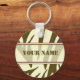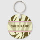A keychain featuring a brown and beige zebra print background and light pink trim. Personalize with your name over sheer center section.