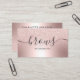 A chic and mofern gilry brows beauty salon business card with elegant modern Rose gold glitter ombre metallic foil. all text is customizable, add your social media.
