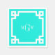 Brt Aqua Wht Greek Key #2 Framed 3 Init Monogram S Napkins