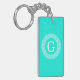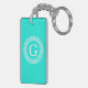 Brt Aqua Wht Greek Key Rnd Frame Initial Monogram Keychain