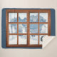 Let's stay inside and keep toasty and warm with this sherpa blanket! Featuring a Scottish white stag and snow laden trees in the forest! Keep it near the fireplace or on the couch ready for a long winter's nap! The Bruce clan badge is set in the bottom window. Great present for Christmas or a winter birthday! Proud to be Scottish!