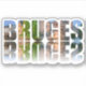 Bruges text composed of photo of historic city center isolated with text reflection in water