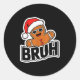 Bruh Funny Christmas Gingerbread Man Teens Boys Ki Classic Round Sticker