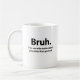 Bruh Typography Bruh Coffee Mug designed by Nisha Prabhu. Start your day with a little extra 'bruh' in your step with this cool and sleek typography coffee mug. Perfect for all the bros and cool cats out there who want to sip their brew in style. Makes a great gift for your fellow bruh-loving friends or family members. Get yours today and let's raise a bruh to good vibes and good coffee!