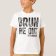This image features a white t-shirt designed for kids. The text "BRUH WE OUT" is printed in large, distressed black lettering at the top. Below that, the smaller text "-5TH GRADERS" is also in black.