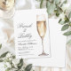 Elegant and simple brunch and bubbly bridal shower design. A classic but modern whimsical look with white, cream, gold and dark gray coloring. Edit all of the text to your own information. Features a single champagne glass as the focus. An overall white and gold vibe, but you can also change out the background color (front and back) and text colors to make it have a different look! A mix of script typography and serif fonts. Modern Brunch And Bubbly Minimal Bridal Shower Invitation.