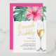 Toast to love with these brunch and bubbly bridal shower invitations, perfect for wedding celebration. These pink floral bridal shower invites feature gold foil accents, a watercolor glass of champagne, vibrant watercolor hibiscus and green monstera palm leaves along the top border for a fresh, tropical flair. Ideal for a champagne theme or brunch and bubbly event, each invite template is fully customizable, making them the perfect personalized brunch invitations for your special day. Whether you're hosting a garden party or a bubbly brunch, these invitations bridal shower set the tone with style and charm.