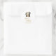 The sticker is made on wonderful paper and had no problem sticking to the bag that I purchased to put it on. I wanted to find a design that would be cute for the bride and groom and this one fit the bill as it has cute "bees" buzzing around and the wedding was taking place in a town called "Bee Cave". The packaging was great and protected the stickers. The website is easy to navigate and there are so many color choices. I had no problem finding a color that the bride was using on everything else selected. The design was adorable and there were many to choose from. You can make the figure as larger or smaller and you can place the photo and writting whereever you want to in the sticker. The printing is fabulous..better than expected.