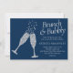Brunch and Bubbly | Navy Blue Silver Gray Shower Invitation