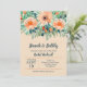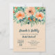 Elegant watercolor of flowers in shades of peach to orange trimmed with teal to jade green foliage with your bridal shower, couples shower details in chic teal lettering on a peach background. **TIP: Click CUSTOMIZE further to add, delete, move and align information, change the fonts, font colors and background color. MATCHING items in our store.