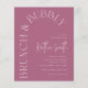 Set the tone for an elegant event with this chic bridal shower invitation! The phrase "Brunch & Bubbly" curves along the edge of the card, and the bride's name is written in modern script lettering. The event details are aligned to the right of the card in classic serif typography. The background is a bold purple, with the event details in a soft cream. The colors are fully editable. Cards reverse to a floral pattern against dark purple. Perfect for themes like pearls or petals and prosecco, brunch with the bride, a cocktail party, or any celebration with a modern, stylish vibe. As part of Zazzle's budget selection, this sheet doesn't come in standard card sizes. To get this design on a standard card, you can find it in the collection or use the Zazzle Make Machine to transfer it onto your preferred product. View the collection linked on this page for matching items, or visit our store for more bridal shower invitations.