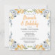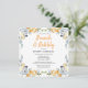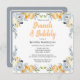 This pretty bridal shower brunch invitation has a unique and trendy square shape with an elegant boho floral bouquet. Accents of peach and soft blue with botanical leafing frame the front of the bridal shower invite. The back of this bridal brunch invitation has a soft silver gray background with a double off white border. Happy, chic, and lighthearted; perfect for an outdoor-themed bridal shower brunch for a fall bridal shower or a winter bridal shower.