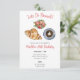 These adorable birthday invites features a watercolor portrait of a croissant, strawberries, and a cappuccino with the caption "Let's Do Brunch!".