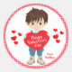 Brunette Boy Happy Valentine's Day Classic Round Sticker