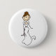 A brunette bride stick figure customizable button, a cute button to have customized with the bride's name and wedding date!