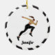 Brunette Girl Runner Cross Country & Kid's Name Ceramic Ornament
