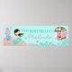 Sweet African American mermaid under the sea with fishes, sea shells, anemone, and coral reefs birthday banner with photo insert template.